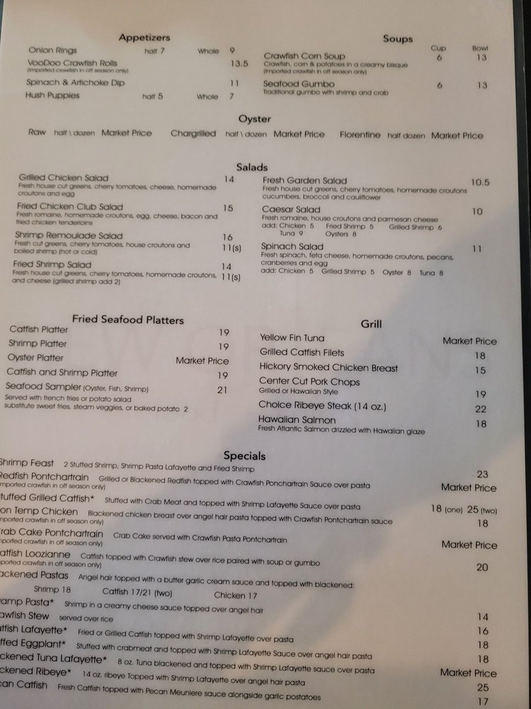 Catfish or Shrimp (Grilled or Blackened $ upcharge) Oyster $. upcharge