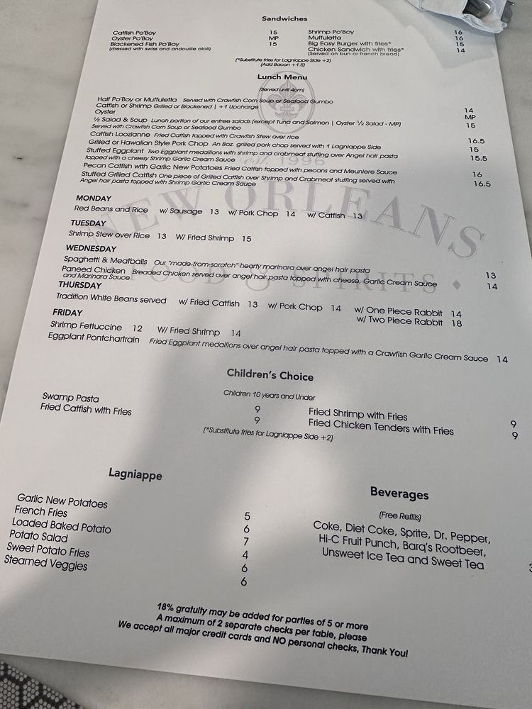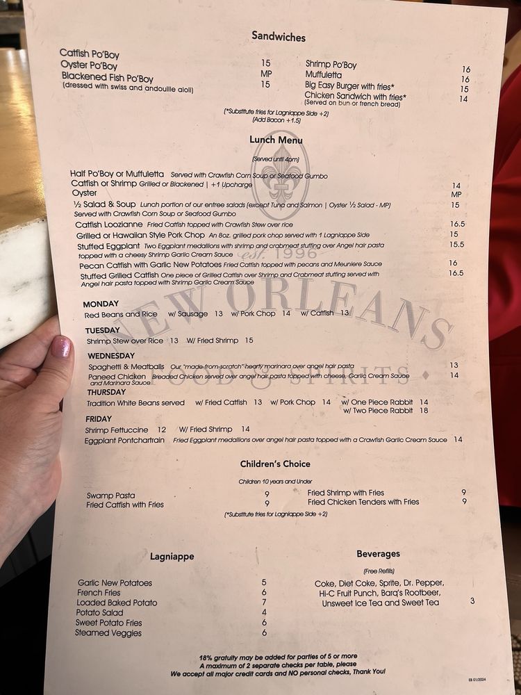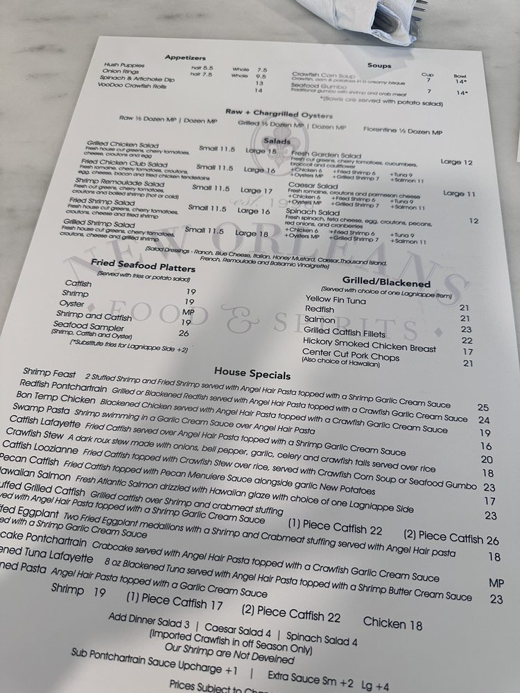 New Orleans Food and Spirits is a hidden gem in Metairie, offering a diverse menu of seafood, salads, and sandwiches. With features like outdoor seating, free Wi-Fi, and a full bar, this casual spot is perfect for groups, kids, and even lunch or dinner dates. Customer reviews rave about the delicious dishes, such as the charbroiled oysters, salmon with garlic butter, and the flavorful swamp pasta. The friendly service and warm hospitality make for a memorable dining experience. Don't miss out on trying their voodoo rolls, eggplant crawfish special, or the creamy potato salad. Whether you're a local or just passing through, New Orleans Food and Spirits is sure to satisfy your cravings for authentic Louisiana flavors.